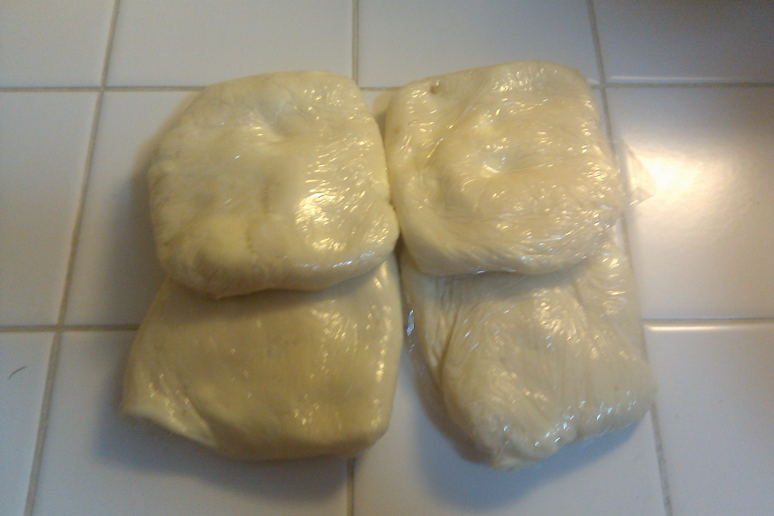 - Cut dough in half and wrap both pieces in saran wrap. Refrigerate for at least 2 hours.