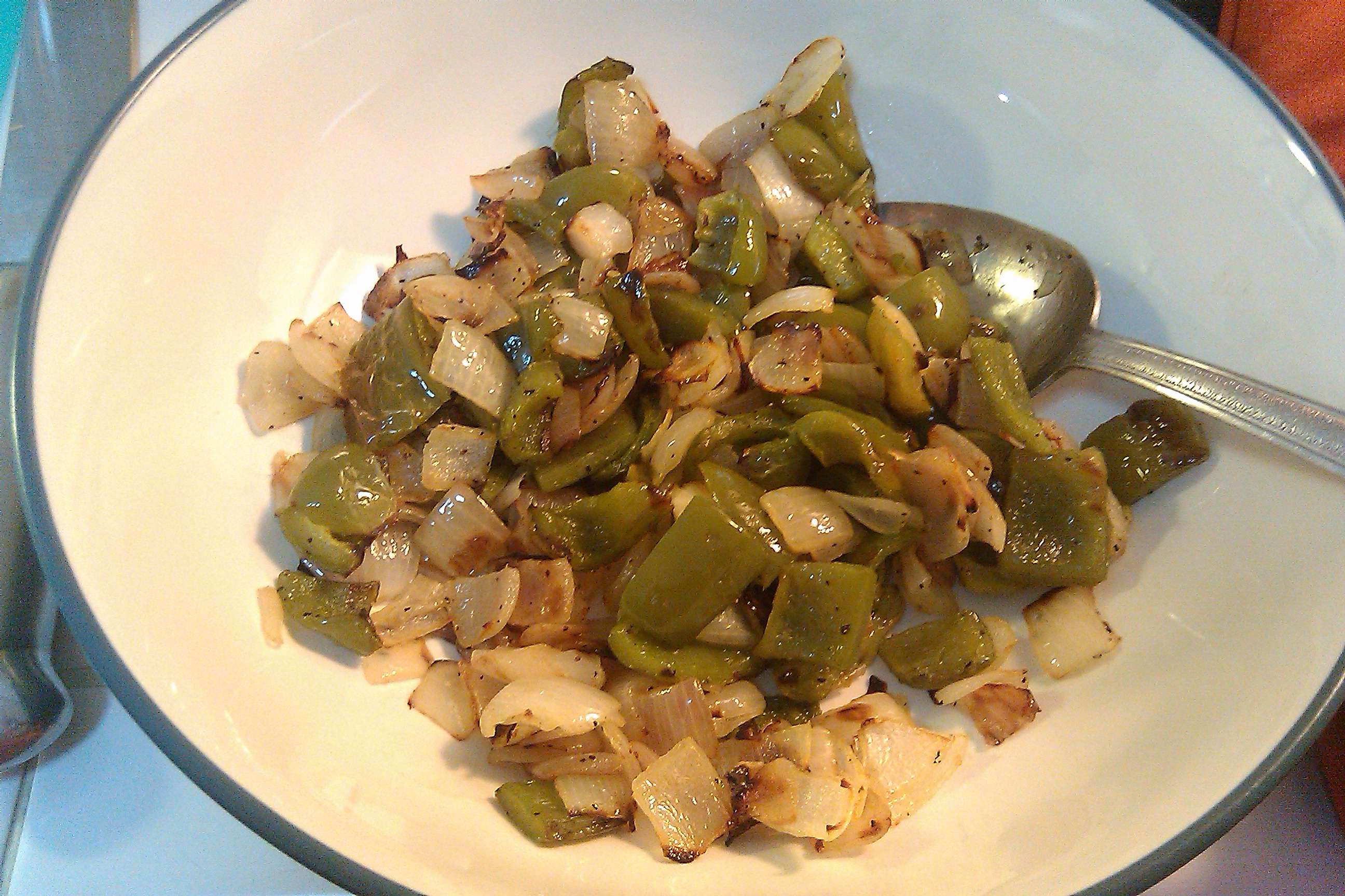 - Stir onions and bell pepper and roast again, until all the onions and bell pepper have been browned