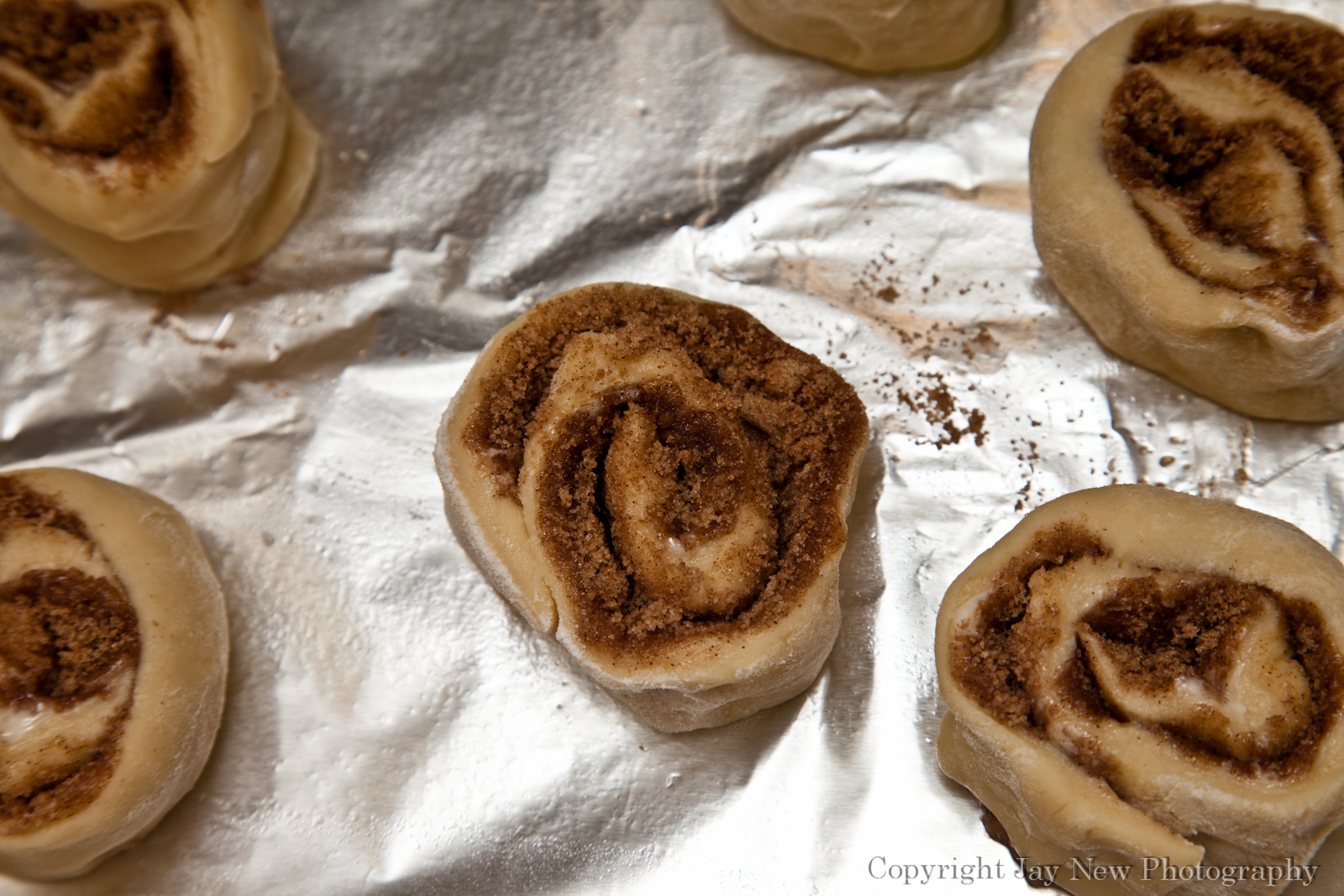 - Cut into even rolls and place cut side up on a greased baking tray