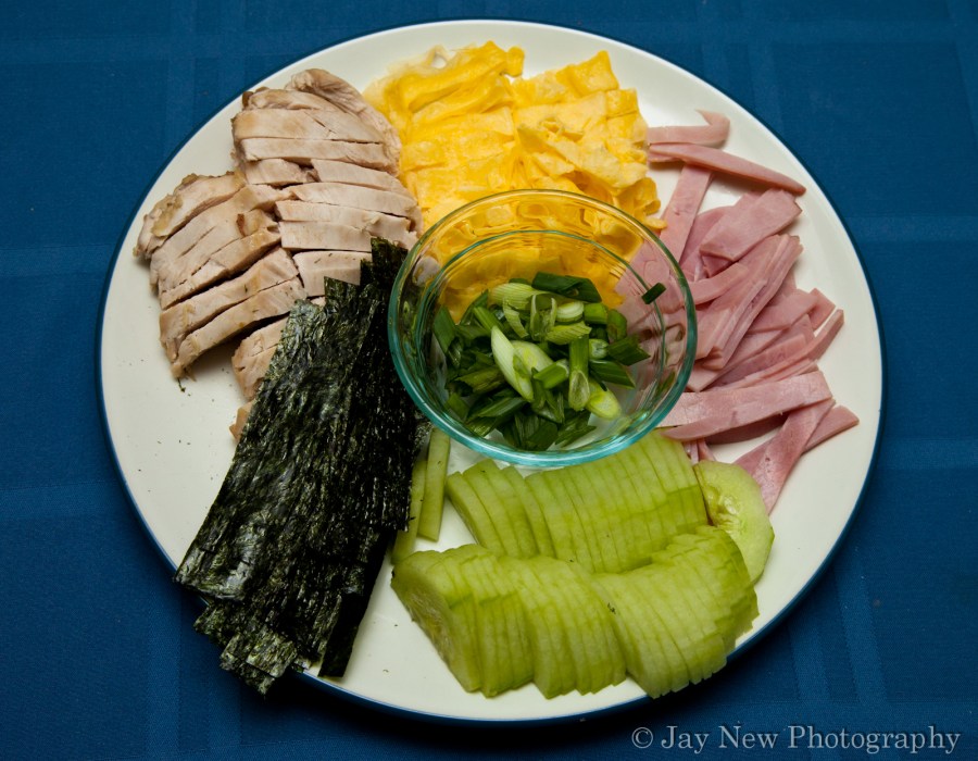 Soba Toppings: Nori, English Cucumber, Sliced Ham, Japanese Thin Omelet, Boiled Chicken Breast
