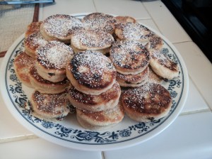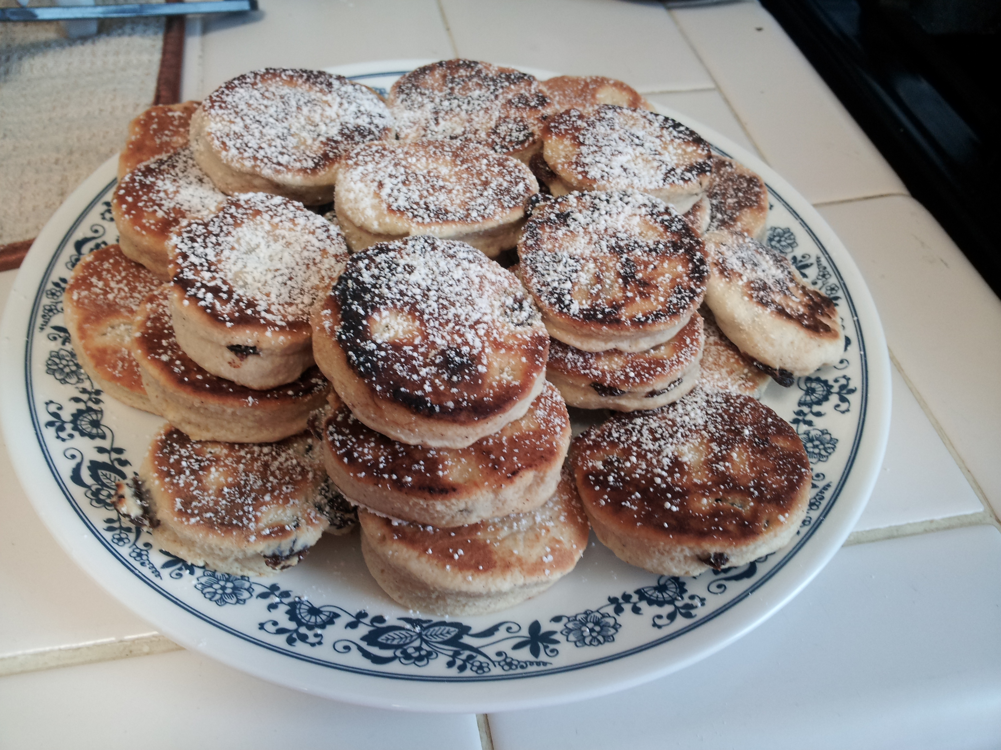 Despite the circumstances (Hurricane Sandy), it is really nice to have my husband home. We got to sleep in and best of all, we got to have a nice leisurely breakfast while watching the new reports. I have been wanting to try making Welsh cakes for a while now and this morning was a perfect opportunity. The recipe is fast, goes great with coffee/tea/milk and doesn’t require many pre-coffee brain cells. Hope you enjoy it as much as we do!