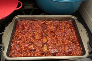 7. Bake for 1 1/2 to 2 hours, when the sauce has the consistency of syrup.