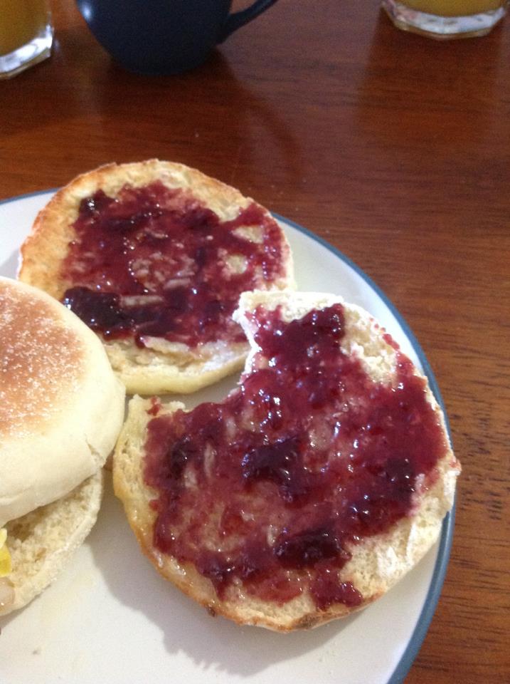 Eating breakfast on a weekend was always a special treat, when I was growing up. You can take the time to sit and enjoy your meal, instead of running to catch the bus. One of my fondest memories of growing up is the good old-fashioned bread with butter and jelly.  I don’t recall too many times, when my family was having a nice breakfast, where we didn’t have toast with butter and jelly. Even when we visited our relatives in India, it was always there. Needless to say, after having a nice breakfast, it’s almost like a dessert for me to finish the meal with this buttery and sweet treat. If I really wanted to get things special, I would have an English muffin, instead of regular toast.