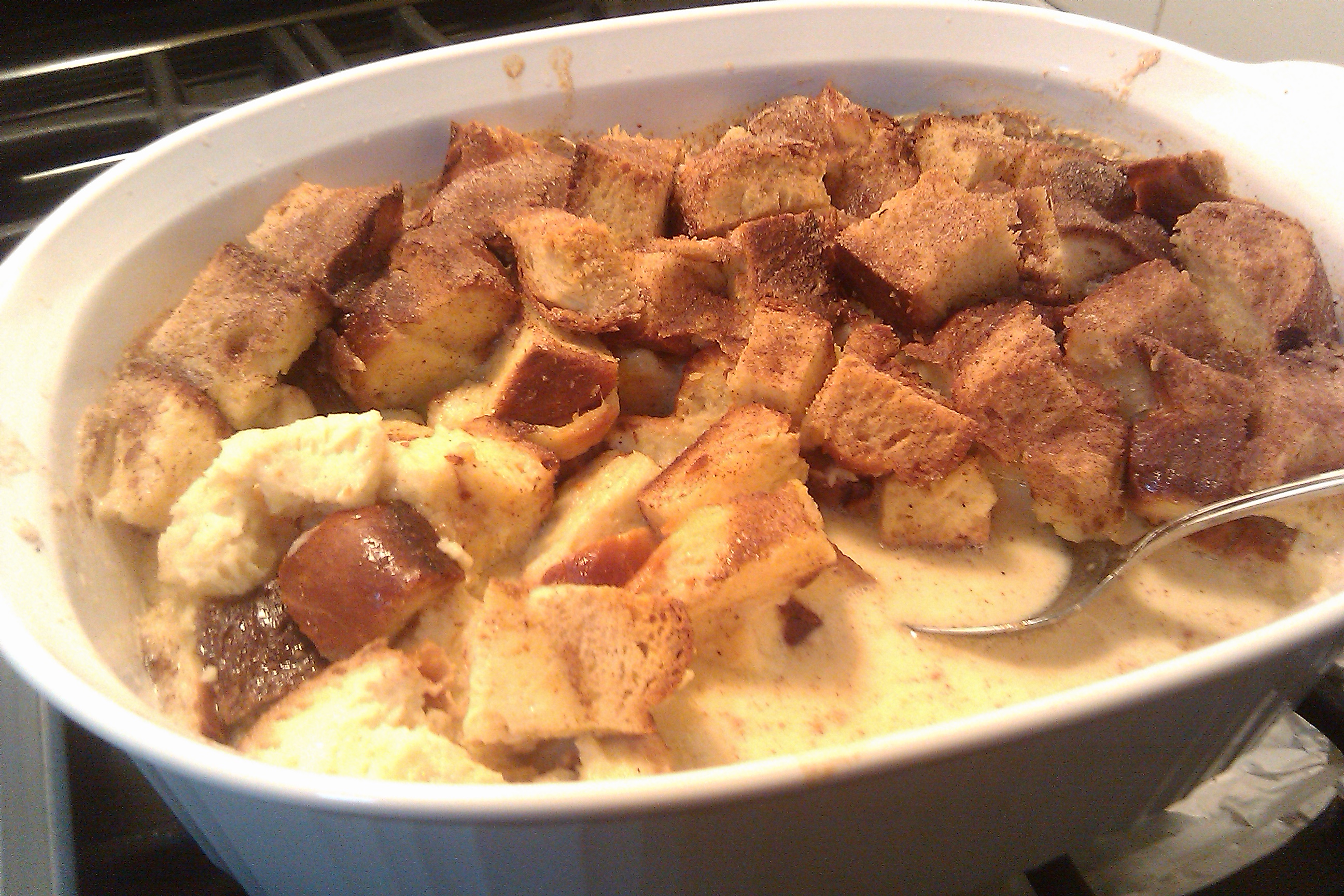 I had guests this evening and I wanted to make a nice dessert for them. I decided to make a bread pudding, mainly because I have never made one before. Of course, with bread pudding you need whipped cream. For my wedding, my good friends had purchased for me, my constant kitchen companion, the KitchenAid Standmixer. You know what that means. Homemade Whipped Cream!