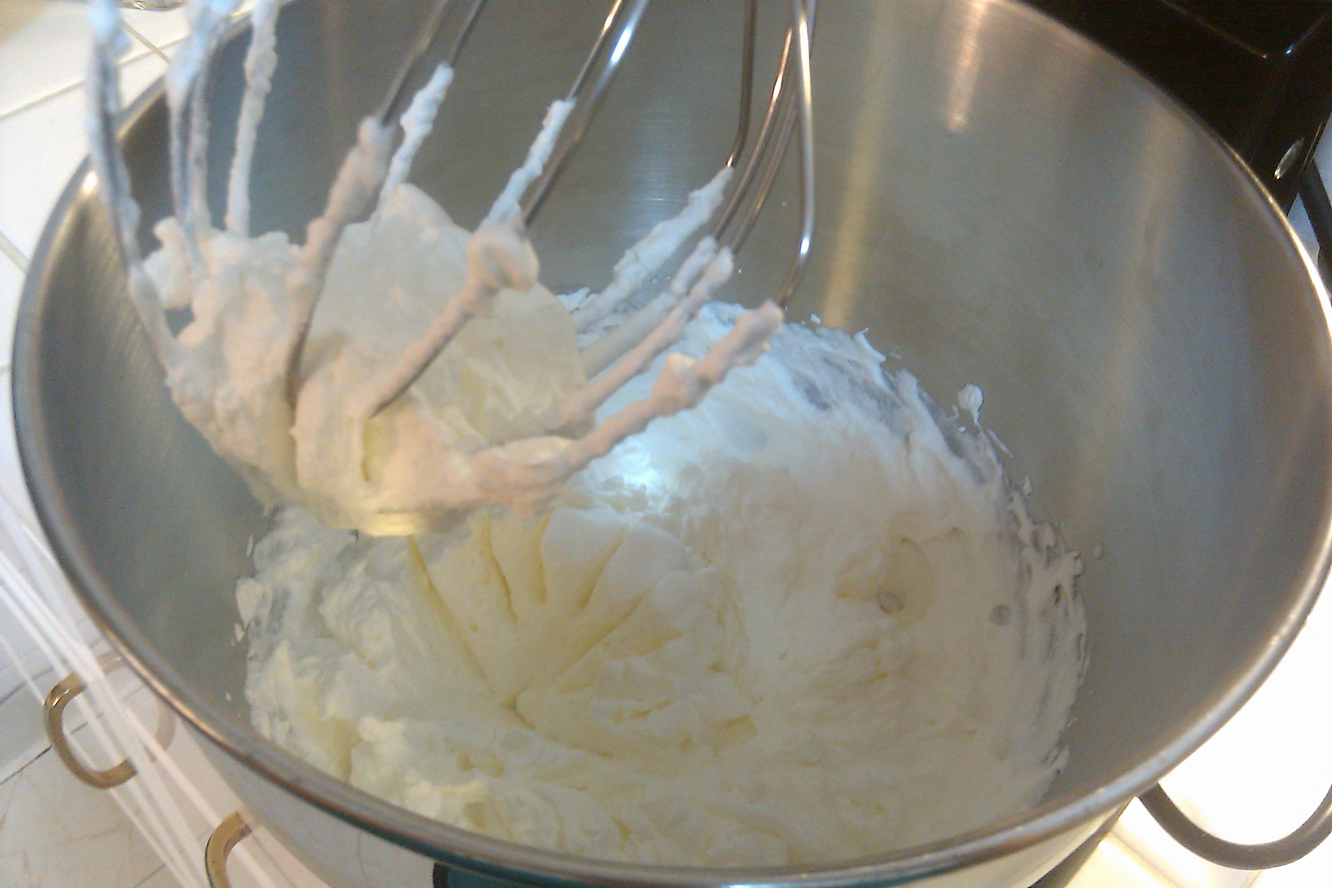 1) Chill your bowl and whisk and make sure all your ingredients are cold before starting. I used my kitchenaid, so I chilled the bowl and whisk.