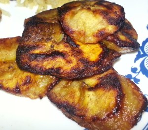 It was living in Belize, that started my obsession with fried plantains. I remember waiting for the lunch truck, at school and always looking forward to it, along with (what I still crave after almost 10 years) Stewed Chicken, Rice and stewed beans. However, despite my fondness, I never made it because of the fact that it required frying. For dinner the other day, I decided to go the Caribbean route with some Grilled Jerked Chicken and I needed a side dish. My thoughts immediately went to fried plantains. The thought of frying and standing over a hot frying pan, in the current heat wave, immediately turned me off but I still wanted some fried plantains. So, I said to myself…lets compromise and oven fry. Oven frying take less time, uses less oil and I don’t have to be in my kitchen while its cooking. Win/Win situation!