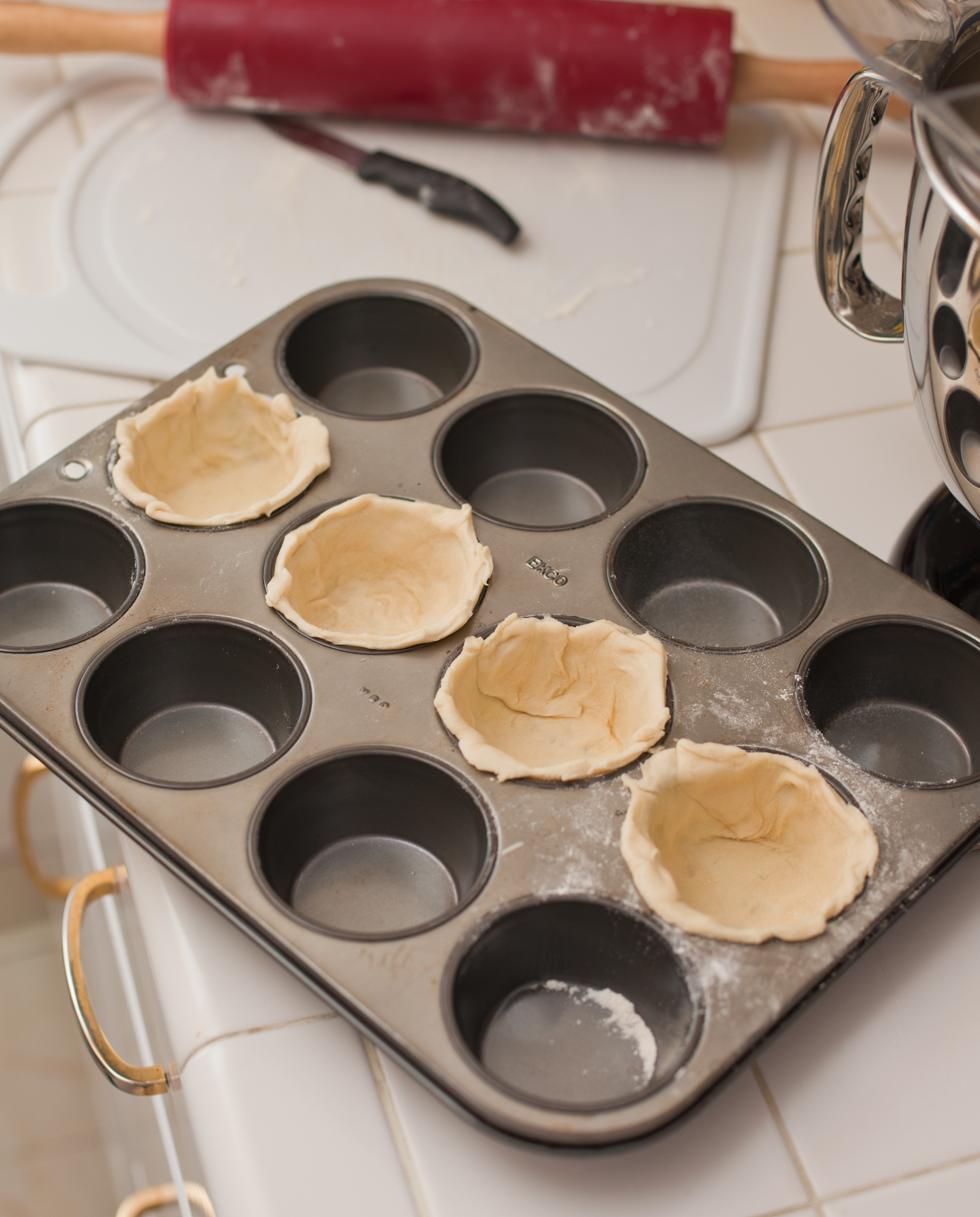 - Place circle into one of the muffin molds and repeat for the remaining 3 molds
